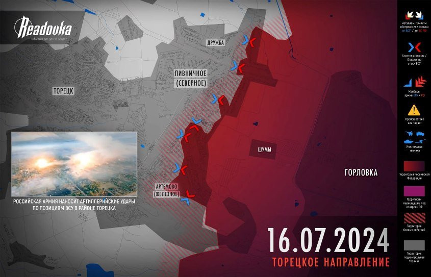 На Торецком направлении не утихают бои в Новгородском, хотя особого продвижения нет. У Горловки ВС РФ продвинулись на глубину до 250 м в селе Дружба, практически полностью взят под контроль поселок Ленинское (Южный), есть продвижение в Кирово (Северное), бои подходят к Железному (Артемово). Наступление с этой стороны выведет ВС РФ западнее по дороге на Нелеповку и перережет пути снабжения с Новгородским. Такой маневр сильно ударит по позициям врага южнее Торецка, но пока рано рассчитывать на то, что он удастся в ближайшее время. Еще один сценарий - продвижение ВС РФ от Дружбы вдоль ж/д на Константиновку, чтобы оттуда начать обход с севера вплоть до трассы на Константиновку. Этот вариант вполне реален, учитывая, что по маршруту практически нет сел, где ВСУ могли бы обороняться, только села Дачное и Дылеевка.