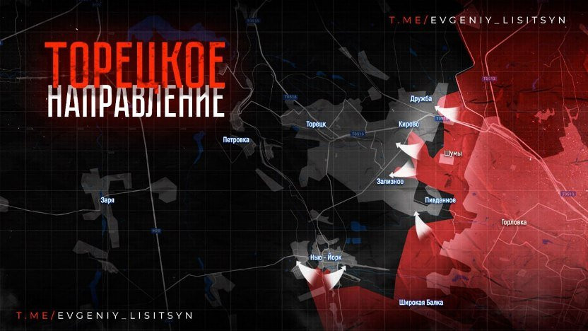 На Торецком направлении В Зализном (Артёмово) подразделения ВС РФ продвинулись на запад в сторону центра населённого пункта.