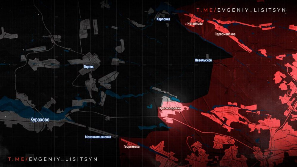 а Донецком направлении оборона ВСУ в Красногоровке продолжает сыпаться. За минувшие сутки российским войскам удалось продвинуться к реке Лозовая. Тем временем ВСУ-шники продолжают отступать и контролируют только западные окраины города.