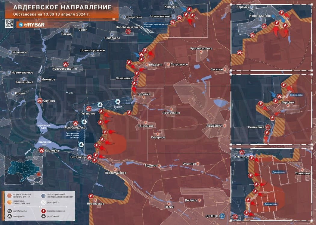 Новая карта боевых действий под Авдеевкой по состоянию на 14.04.2024