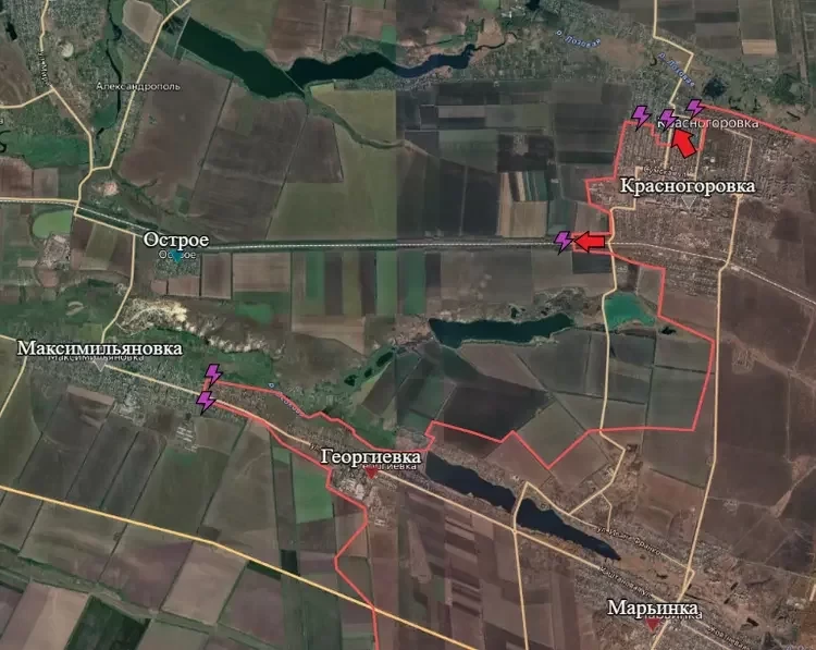 На Кураховском направлении в Красногоровке подразделения Армии России продолжают выдавливать противника с севера-запада центральной части Красногоровки, пишет PulsePen. Поступали сообщения, что нашим бойцам удалось добраться до дороги, связывающей центральную и северо-западную части Красногоровки, однако, эта информация не подтвердилась. Идут ожесточённые встречные бои. Продвижение ВС РФ всё-таки есть, но чуть южнее. Вдоль железной дороги наши бойцы продвигаются в сторону Острого.