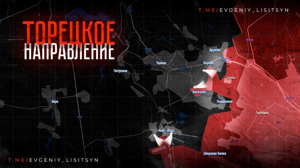 На Торецком направлении ВС РФ все далее продвигаются в жилой застройке Железного и уже дошли до центра населенного пункта. Киевское командование перебрасывает сюда резервы, но российские войска контролируют пути снабжения гарнизона ВСУ в этом районе, пишет военкор Евгений Лисицын в Telegram-канале.