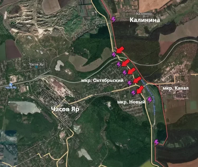 На ЧасовЯровском направлении возобновился полномасштабный штурм Часов Яра. Сообщается, что нашим бойцам удалось прорваться на территории к западу от канала “Северский Донец - Донбасс” - в микрорайон Октябрьский, пишет PulsePen.