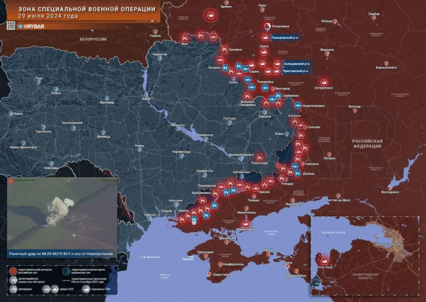 Новая карта боевых действий в зоне СВО на Украине сегодня, 30 июля 2024 года