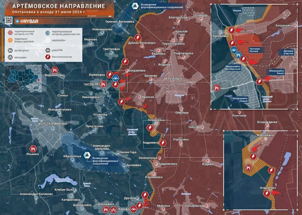 ВСУ оказались не в состоянии выбить наши части с плацдарма на западном берегу канала Северский Донец - Донбасс силами городского гарнизона. Более того, ВС РФ здесь вынудили противника откатиться на запад. А для того, чтобы он не смог перебросить подкрепления с внешней линии обороны города, русская армия сковала украинские подразделения боями севернее и южнее Часова Яра.