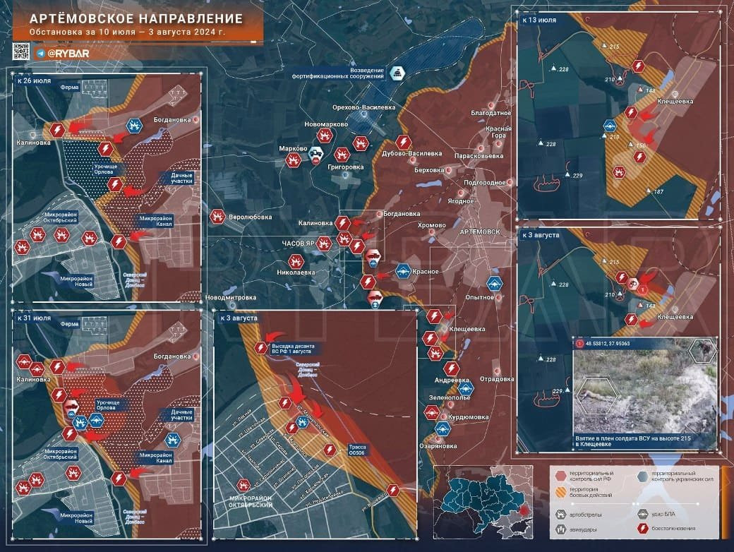 Новая карта боевых действий в зоне СВО на Украине сегодня, 4 августа 2024 года