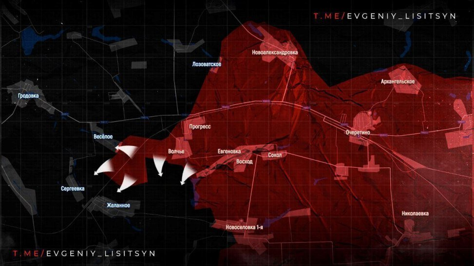 Продолжается движение российских сил у Ивановки, где противник отступил из центра поселка. Есть небольшие продвижение в лесополосах у Сергеевки и Межевого.