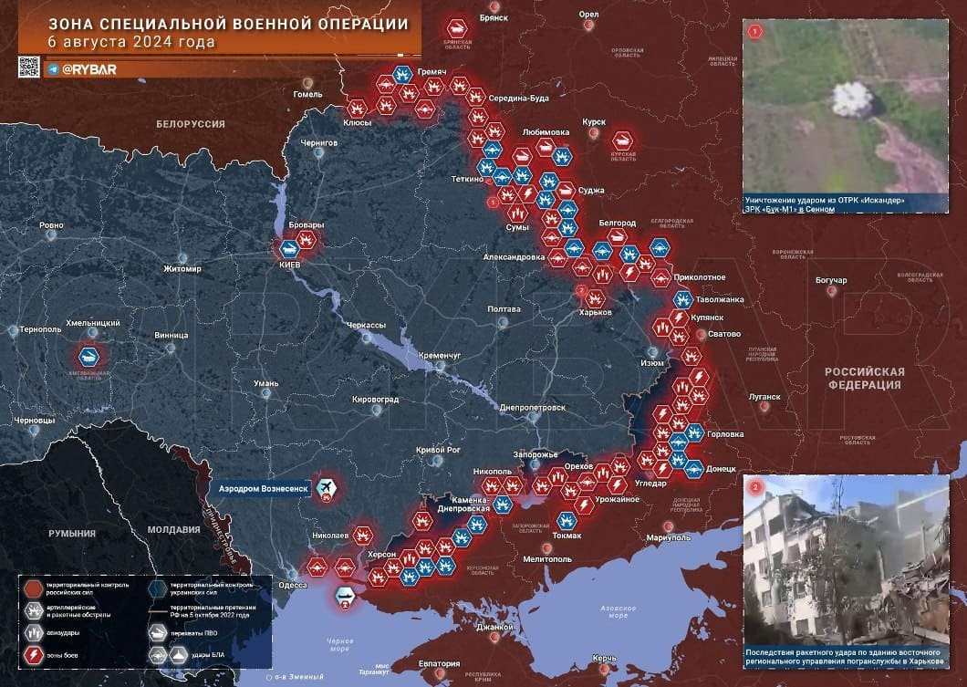 Новая карта боевых действий в зоне СВО на Украине сегодня, 7 августа 2024 года