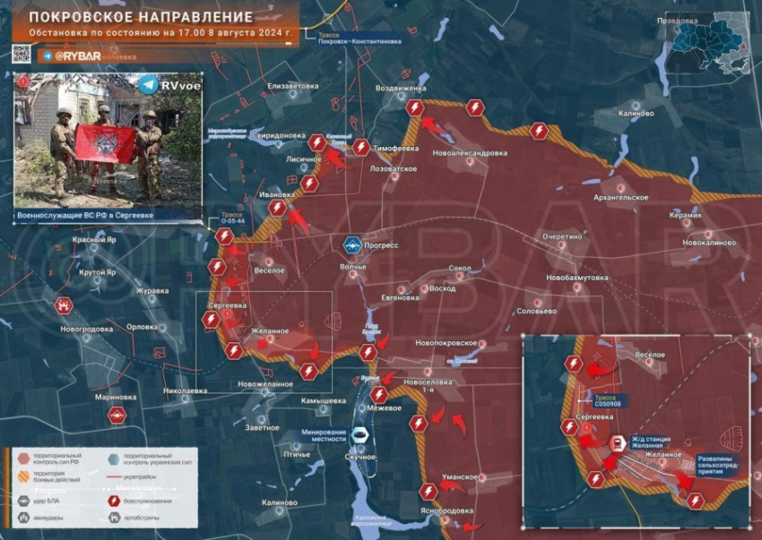 На Покровском направлении российская армия продвинулась на запад в районе Тимофеевки, а также освободила Сергеевку и ведет зачистку в Желанном.
