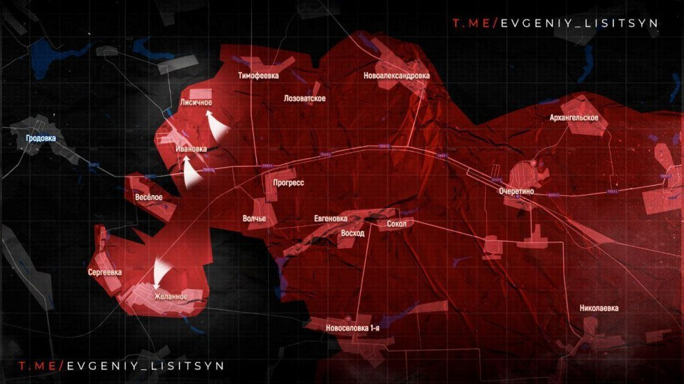 На Покровском направлении российские войска полностью освободили населённые пункты Ивановка и Лисичное и продолжили продвигаться к селу Свиридоновка. Помимо этого российская армия заняла множество лесопосадок и укрепов ВСУ, а также руины ферм западнее села Ивановка. Также сообщается о взятии крупного укрепрайона ВСУ в Желанном, благодаря чему наши бойцы контролируют практически весь населенный пункт.