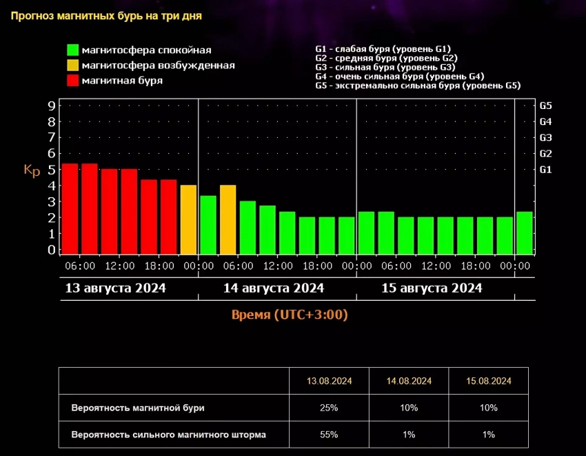 Магнитная буря сегодня, 13 августа: появились детали о сильных геомагнитных колебаниях (график)