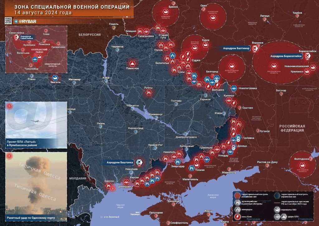 Новая карта боевых действий в зоне СВО на Украине от 15.08.2024