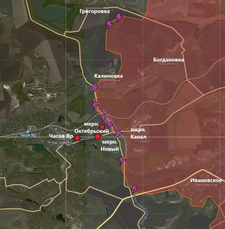 На Константиновском направлении продолжаются ожесточённые бои на восточном окраине микрорайона Октябрьский в городе Часов Яр. Противоборствующие силы наносят друг по другу удары беспилотниками, идут также и стрелковые бои, работает и артиллерия. Также бои идут в районе населённого пункта Григоровка. Штурм села пока ещё не начался, сообщает PulsePen.