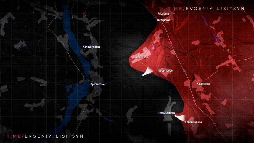 На Купянском участке наши парни продвигаются в направлении к реке Оскол от Песчаного. Российские силы замечены уже в районе Глушковки и Кругляковки, но для продвижения основных сил важен контроль над высотами в районе Песчаного. Также есть хорошие новости с района Новосëловского. Там наши бойцы закрепились на правом берегу реки Жеребец.
