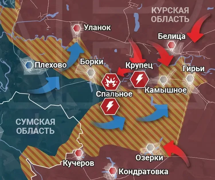 Авторы канала уточнили, что в ночь на 16 августа бои велись в селе Крупец Рыльского района. Также российские бойцы смогли отразить атаку в селе Глушково. Кроме того, бойцам ВС РФ удалось уничтожить бронегруппу ВСУ, которая сидела в засаде в районе села Сафоновка. Там ликвидировано по меньшей мере пять боевых машин.