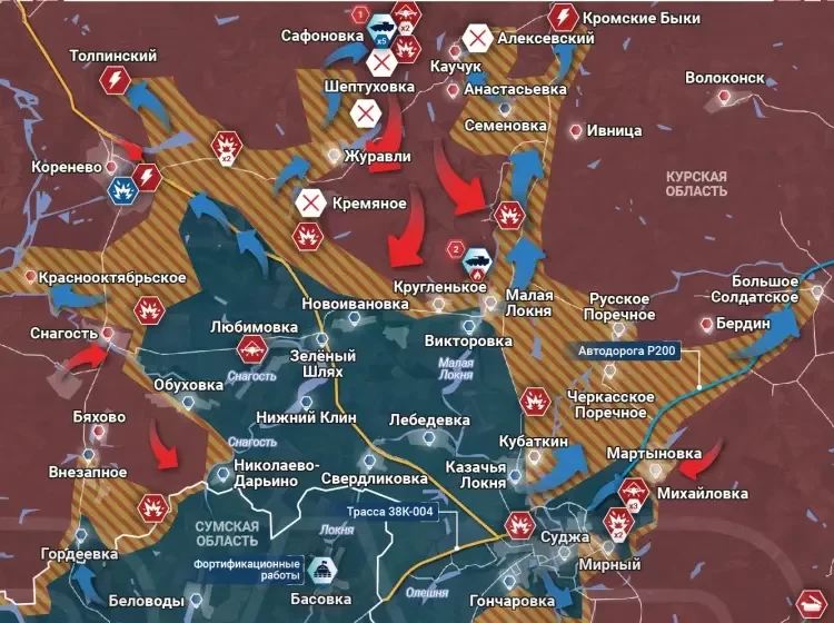 Свежая карта боевых действий в Курской области по данным на пятницу, 16 августа, а также обзор военно-политических событий в контексте атаки Вооруженных сил Украины (ВСУ) российской территории.