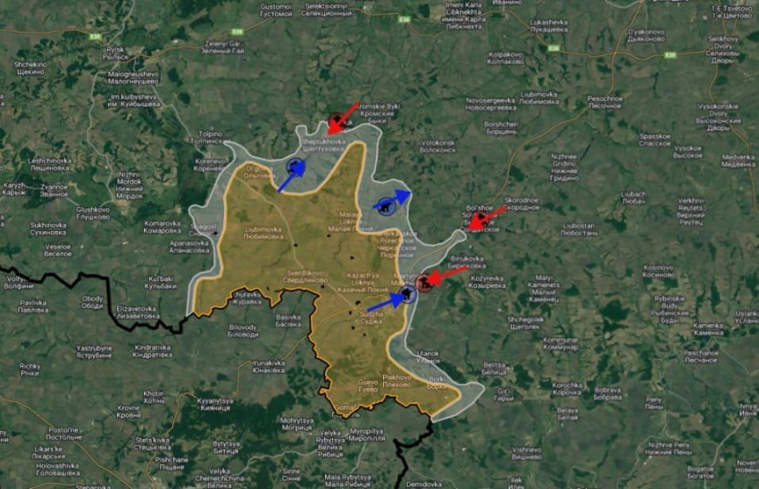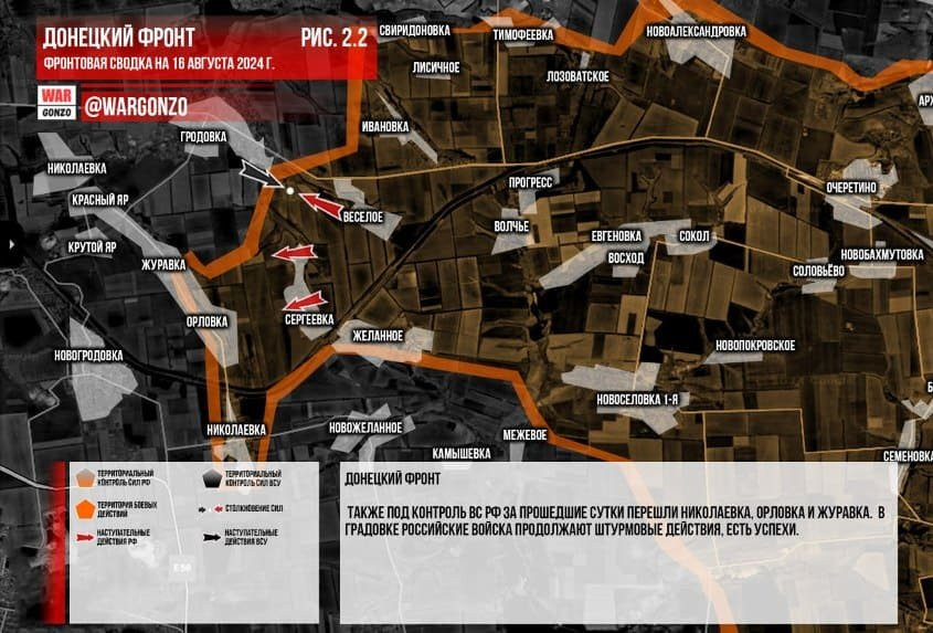 Обновлённая карта боевых действий на Украине по данным на 12:00 мск сегодня, 16.08.2024