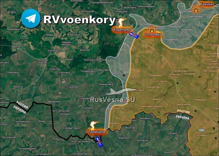 На Купянском направлении российская армия установили контроль над высотами севернее Песчаного. Это позволяет нашим бойцам держать огневой контроль над Колесниковкой, Глушковкой, Кругляковкой, которые находятся в низине. Отсюда примерно семь километров по прямой до реки Оскол. Выход к ней позволит рассечь группировку противника на несколько частей.