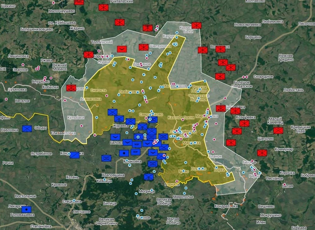 В целом на Льговском участке ситуация сложная и имеет тенденцию к ухудшению. Численный перевес, который противник сумел здесь собрать, а еще отсутствие сплошного фронта, дает ему возможность атаковать и совершать обходные маневры своими ДРГ.