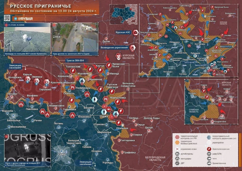Обзор главных событий в Курском приграничье, а также новая карта боевых действий и последние новости по состоянию на субботу, 24.08.2024, в материале нашего сайта N4k.