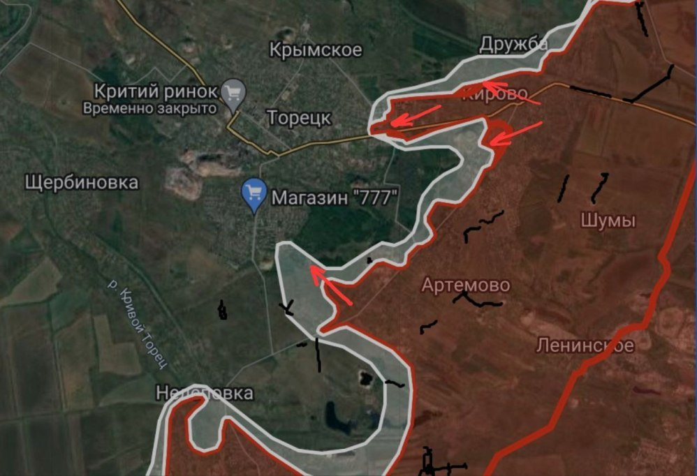 На Торецком направлении российские штурмовики закрепились в юго-восточной и северо-восточных частях Торецка, продвинулись в глубину на 1 км районе Торецкой колонии №2. Идут ожесточенные бои.