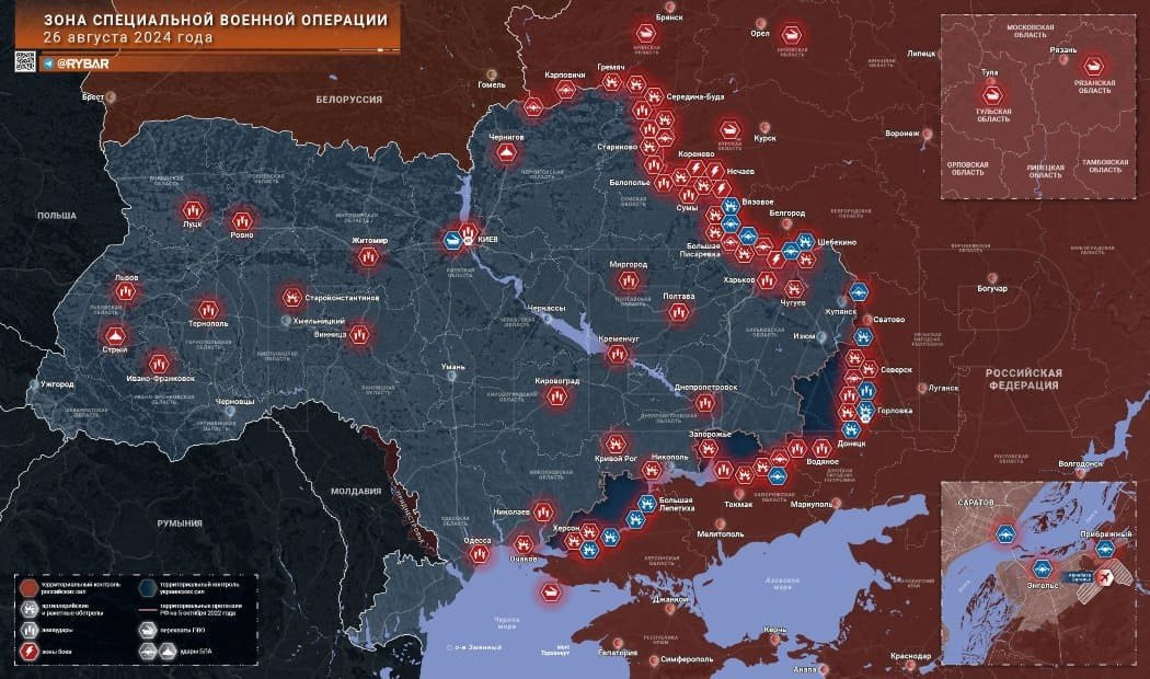Новая карта боевых действий в зоне СВО на Украине от 27.08.2024