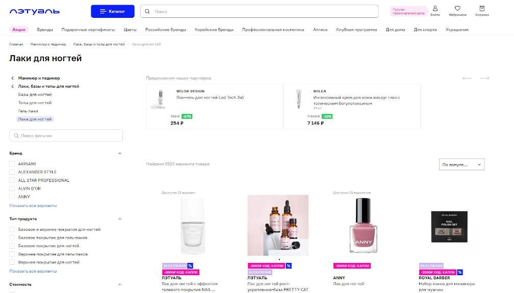 Не бойтесь экспериментировать с разными оттенками лака и создавать уникальные комбинации. Вы можете подобрать оттенок, который подчеркнет вашу индивидуальность и поднимет настроение. В интернет-магазине ЛЭТУАЛЬ вы найдете одну из самых богатых палитр — здесь тысячи вариаций лаков от самых известных брендов. Уйти без покупки просто не получится!