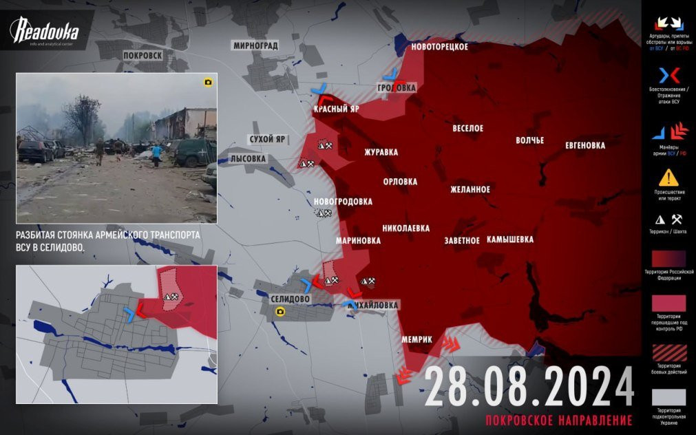 Но главным успехом дня для ВС РФ стал штурм Селидово. Наши бойцы сходу ворвались в город, заняв господствующий над округой отвал шахты имени Коротченко. После чего ВС РФ продолжили продвигаться по улицам Островского и Лисичанской. Восточнее террикона наши бойцы закрепились у стадиона «Авангард». Происходящее указывает на то, что ВСУ оставят и Селидово в самое ближайшее время.