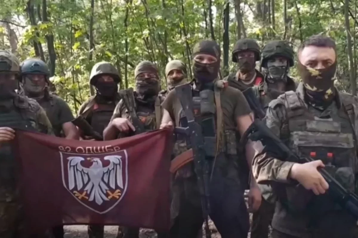 «Мы, подразделение 9-го мотострелкового полка, нами были уничтожены наемники из 82-й отдельной десантно-штурмовой бригады ВСУ, которые зашли на нашу землю, чтобы убивать и насиловать мирное население. Детей, женщин, стариков. Не допустим этого! Враг будет разбит, а победа будет за нами», - сказал один из российских военнослужащих на видеозаписи, на которой бойцы ВС РФ демонстрируют захваченное знамя.
