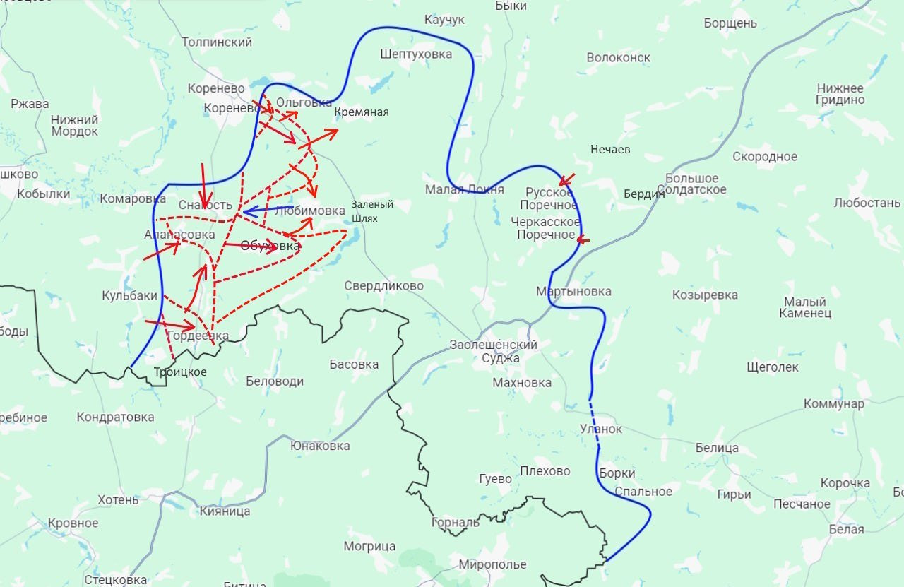 С другой стороны противник со стороны Сумской области вечером, введя свежие силы по направлению к Глушково (причем, судя по экипировке это какая-то ударная элитная часть) из района госграницы продолжил свои удары с целью выйти в тыл нашим атакующим подразделениям и сумел к исходу дня все-таки потеснить наши силы в районе н.п. Новый Путь, пишет в своем Telegram-канале Юрий Подоляка.