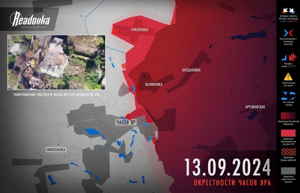 За прошедшее время армия России в Часов Яре смогла продвинуться на севере микрорайоне Октябрьский. По улицам Цветочная и Северная наши бойцы дошли до Родниковой. Дальнейшему же продвижению мешает здания школы № 17, которое противник превратил в «укреп». Севернее города ВС РФ полностью освободили Григоровку, сообщает Telegram-канал Readovka.
