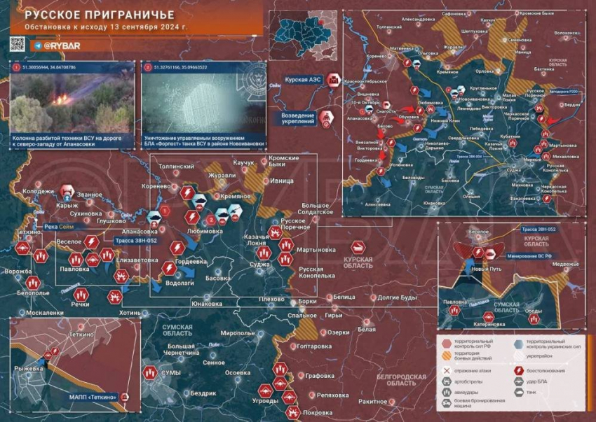Новая карта боевых действий в Курской области: информация на сегодня, 14 сентября