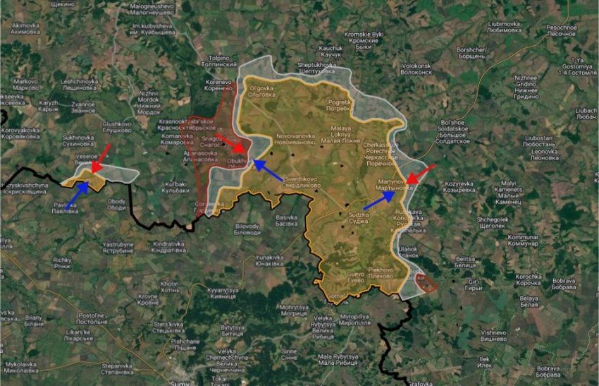 На Суджанском участке продолжаются боестолкновения в районе Камышевки, Мартыновки, Русской Конопельки. ВС РФ давят в направлении Плехово.