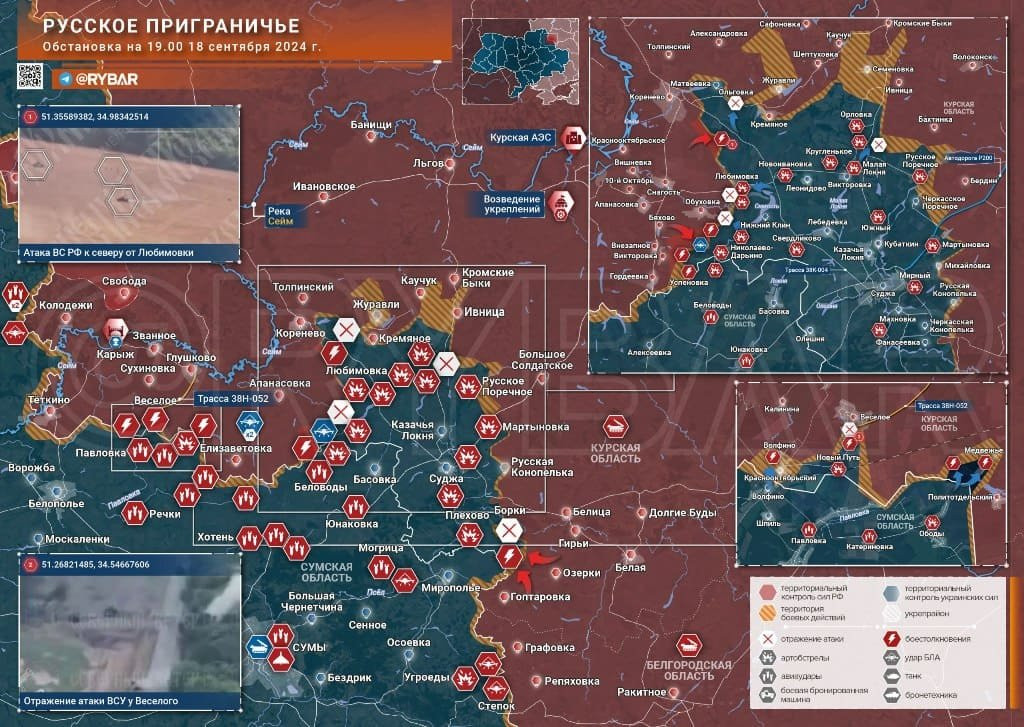 Новая карта боевых действий в Курской области от 19 сентября