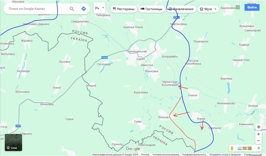 И также наши части атакую южнее Суджи в районе Плёхово и Черкасской Конопельке. Пока без особого продвижения.