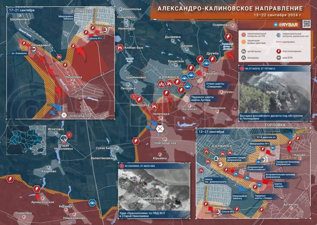 На Александро-Калиновском направлении ВС РФ освободили Нелеповку и высадили десант в центре Леонидовки. Кроме того, есть успехи на подступах к центральной части городской застройки Дзержинска.