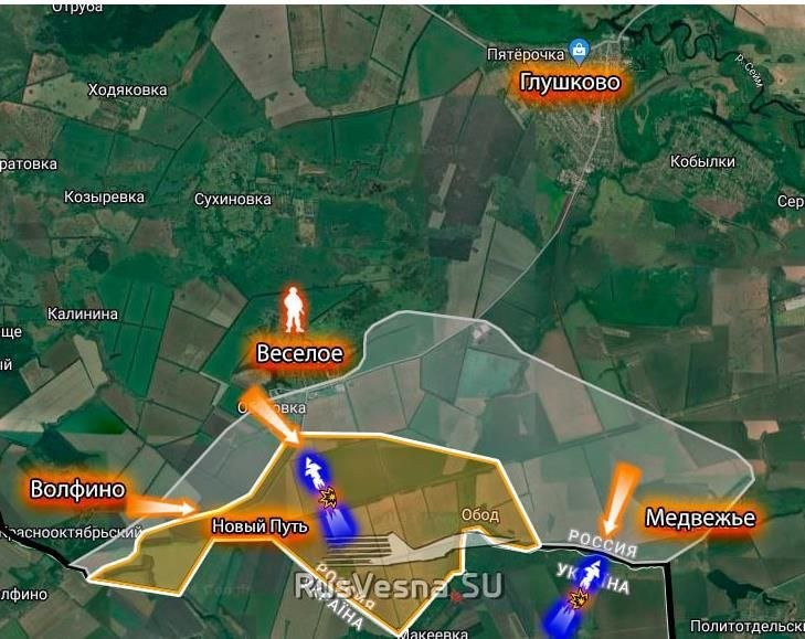 Украинские формирования атакуют в районе Веселого в Глушковском районе. А в окрестностях Нового Пути фиксируются признаки накопления личного состава для дальнейшего наступления в направлении Глушково.