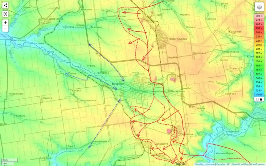Ну и еще одну, гораздо большую угрозу мы противнику создаем чуть севернее. Прорыв линии Цукурино и сегодняшние успехи юго-западнее Селидово, довольно скоро должны нас привести к полному перерезанию линии снабжения противника южнее и западнее города. А наступление наших частей из Новогродовки (которое также разворачивается успешно) должно охватить его с севера. И тогда противнику придется выбирать. Либо окружение крупной его группировки внутри Селидово (без шансов на успех), либо оставление этого города без серьезных боев.