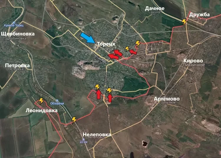 Военный эксперт Андрей Марочко заявил, что российские войска заняли более выгодные рубежи под селом Терны и вплотную подошли к Торскому.