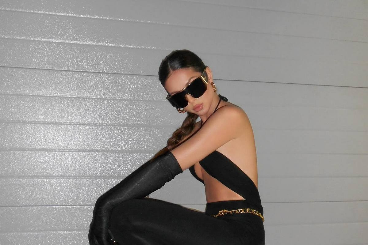 На снимке она предстала в экстремально коротком топе без белья. В сочетании с ним артистка надела черные обтягивающие брюки, золотой пояс, перчатки, сумочку. Также она уложила волосы и сделала нюдовый макияж.
