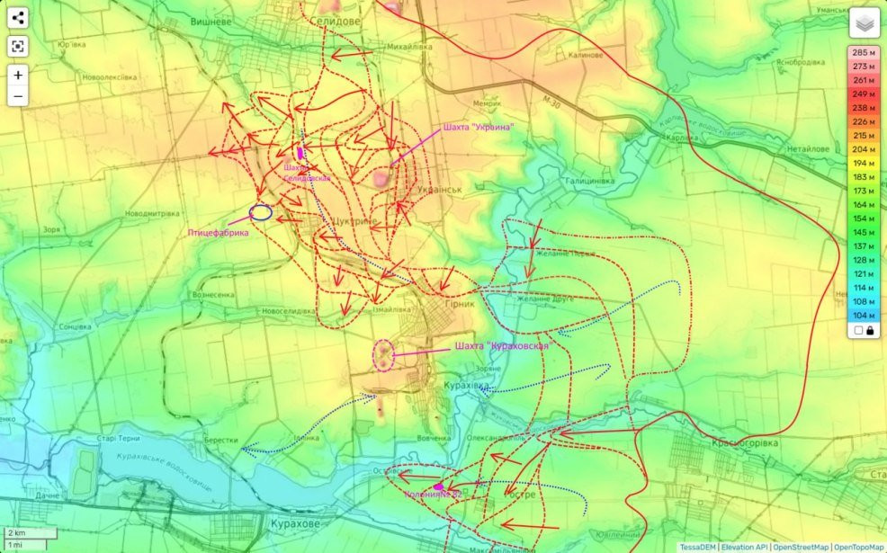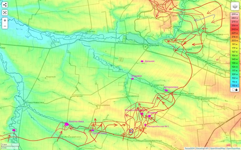 Селидово-Кураховское и Угледарское направления на карте