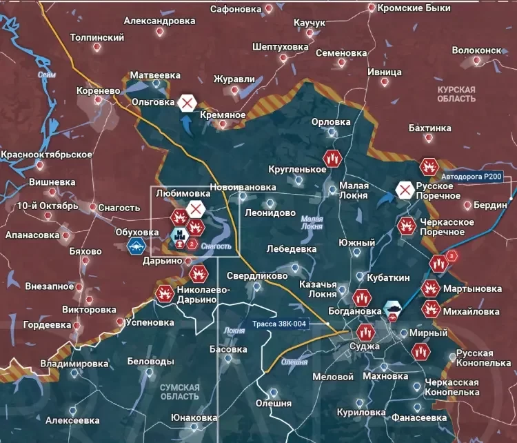 В Суджанском районе украинские формирования предприняли атаку бронегруппой в направлении Обуховки, однако российская авиация «накрыла» подразделения противника во время их выдвижения с исходных позиций. Также накаты украинских формирований отражены в районе Русского Поречного и Черкасского Поречного.