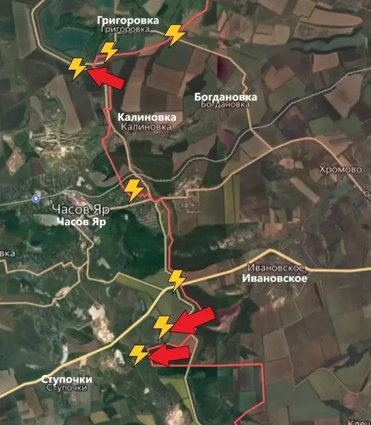 На ЧасовЯрском направлении отмечаются боестолкновения в районе Клещеевки.