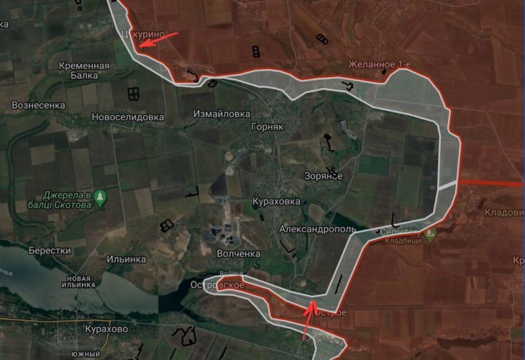 На Кураховско-Угледарском направлении продолжаются встречные бои районе железнодорожной платформы Острый. В Максимильяновке российские войска давят в западном направлении.