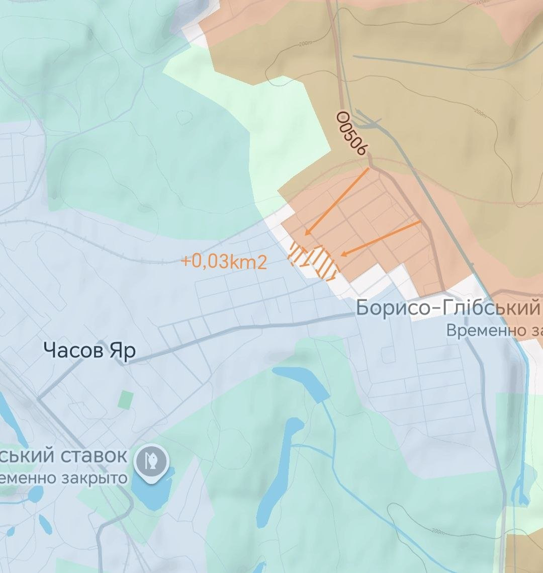 На Часовярском участке ВС РФ продвинулись в юго-восточной части мкр Октябрьский Часов Яра, а также выбили ВСУ с позиций вдоль канала Северский Донец -Донбасс и взяли под контроль район моста. Есть успехи наших у рудника южнее Часов Яра.