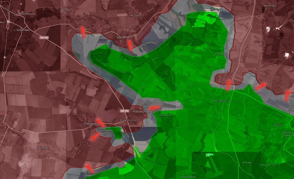 10 октября ВС РФ начали массированную танковую атаку, за которой последовали последующие волны в районе Любимовки. Им удалось занять село и провести танковые атаки в районах Новоивановки и Зелёного Шляха. Это вынудило ВСУ не только отступить, как это было зафиксировано в самой Любимовке, но и отойти со всего выступа, который образовался до Ольговки.
