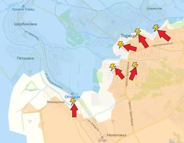 Сообщается, что ВС РФ ведут бои на северных окраинах Торского. Однако, кадров объективного контроля нет ни от одной из сторон, поэтому данная информация воспринимается с определённой долей скептицизма.