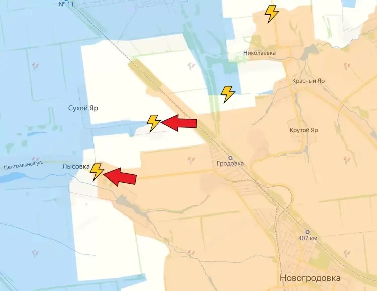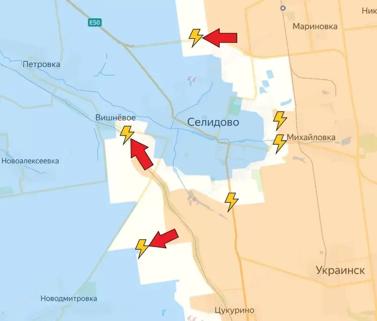 По данным авторов канала, северные границы котла идут по линии Лысовка - Сухой Яр и трассы Е-50. Одновременно с юга ВС РФ удалось достичь Вишневого.