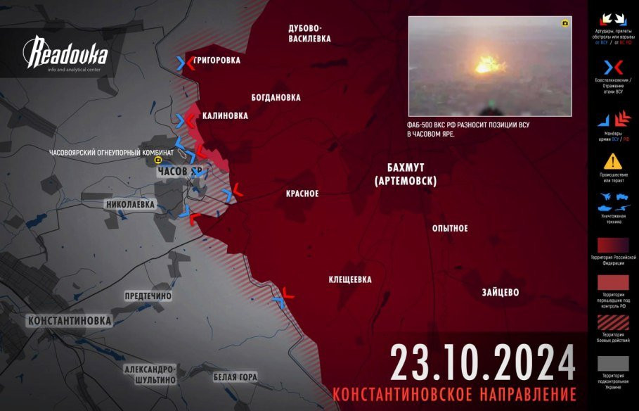 Успехи русских войск в наступлении южнее Часова Яра поставили общий оборонительный замысел ВСУ в городе под угрозу. Опасность выхода ВС РФ во фланг огнеупорному комбинату потребовала от противника изменения оборонительной схемы. Она выразилась в оставлении двух микрорайонов Новый и Октябрьский у канала Северский Донец - Донбасс и использовании ранее развернутых там сил для укрепления обороны по новой линии, информирует Telegram-канал Readovka.