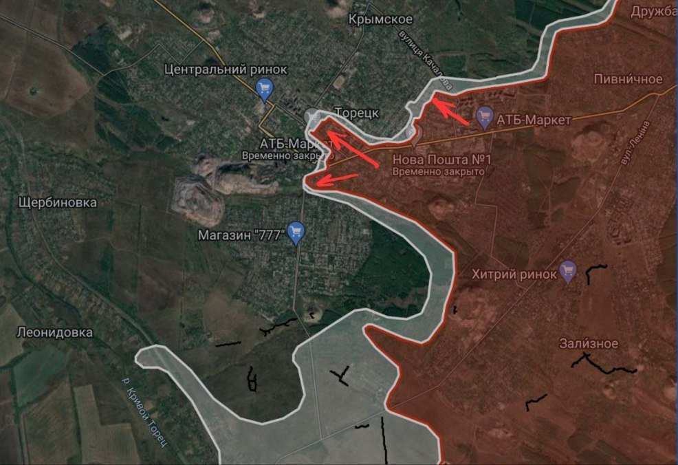 На Торецком направлении в Торецке продолжаются встречные бои в центральной части города. Об этом сообщает Telegram-канал "БелВПО".
